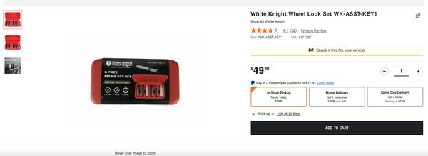 BRAND NEW UNUSED - White Knight Wheel Lock Set WK-ASST-KEY1