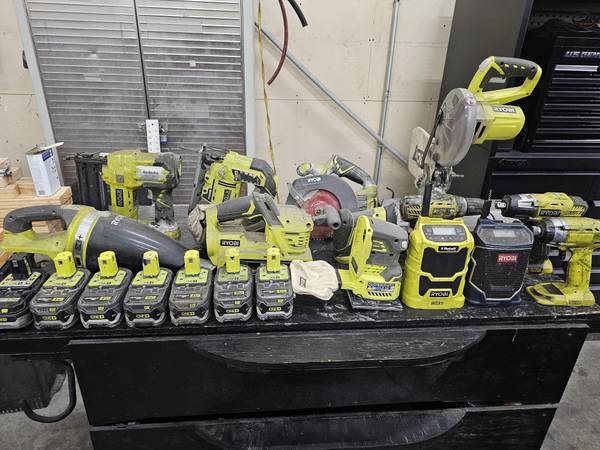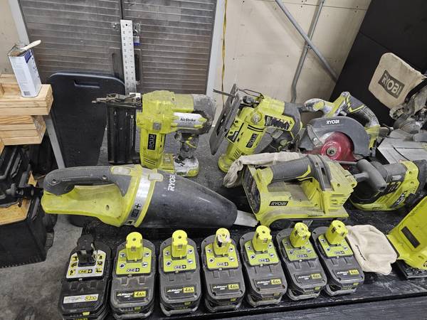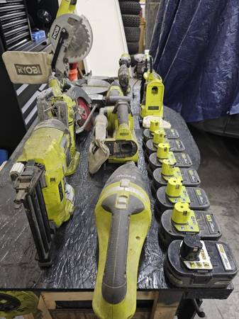 Hello. I'm selling most of my Ryobi tools. They have served me well over the years but now they have to go. Everything works great. I have upgraded to a different brand and have no room for these anymore. Everything in the picture comes with the deal including a charger. These are used tools so they have signs of wear and tear but work the way they are supposed to. 5....0.....4.....3.....9....7.....9.......3.......4.......5