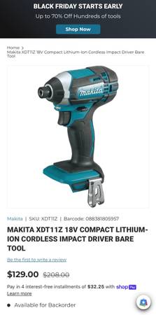 Makita Impact Driver 18v LXT Lithium-Ion 1/4 in. Cordless Variable...