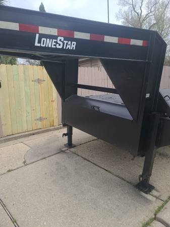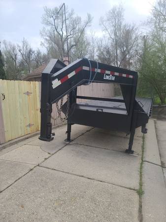 Lone Star 32 foot Gooseneck deckover trailer. Texas made. 2-7k axles.New brakes,new trailer plug in,leds lights,8 foot ramps for easy loading,steel tool box,new good year spare tire. Black painted water proof Deck. Heavy equipment hauler,cars,trucks,trackors and any other items you want. Easy towing down road and easy hookup. Trailer in great condition and ready for work.