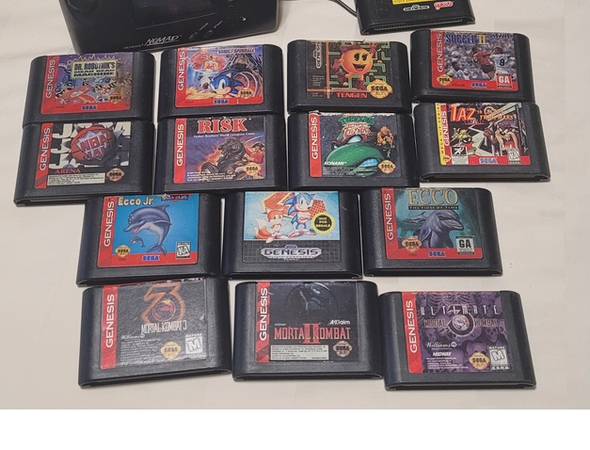Sega Nomad handheld gaming console 1995 W/ Game Genie & 14 Games-MBA Jam, Mortal Kombat Games and Ninja Turtles 🐢 even! Great Games!