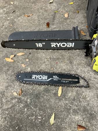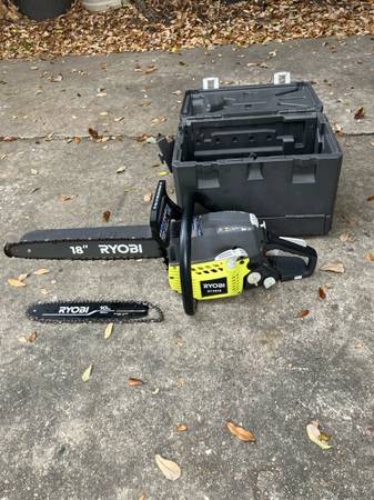 Ryobi 18” Gas Chainsaw with 10” & Case, excellent working condition! $150, call five zero four six three five nine five zero zero.