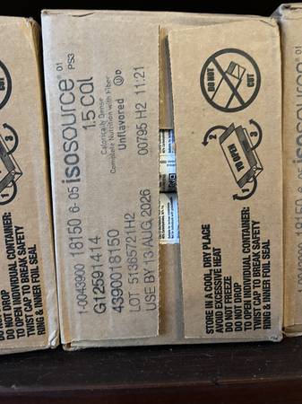 I have 6 cartons (24 count each) of Nestle Isosource 1.5 Cal Tube Feeding Formula Unflavored 250 mL; used for feeding tubes; free to you if you can pick them up. The cartons are unopened and there is nothing wrong with them, we just can't make use of them.